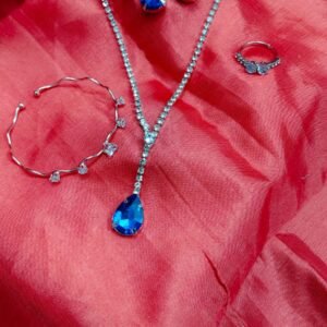 Emerald Elegance Silver-Plated Jewelry Set – Necklace, Earrings, Bracelet & Ring